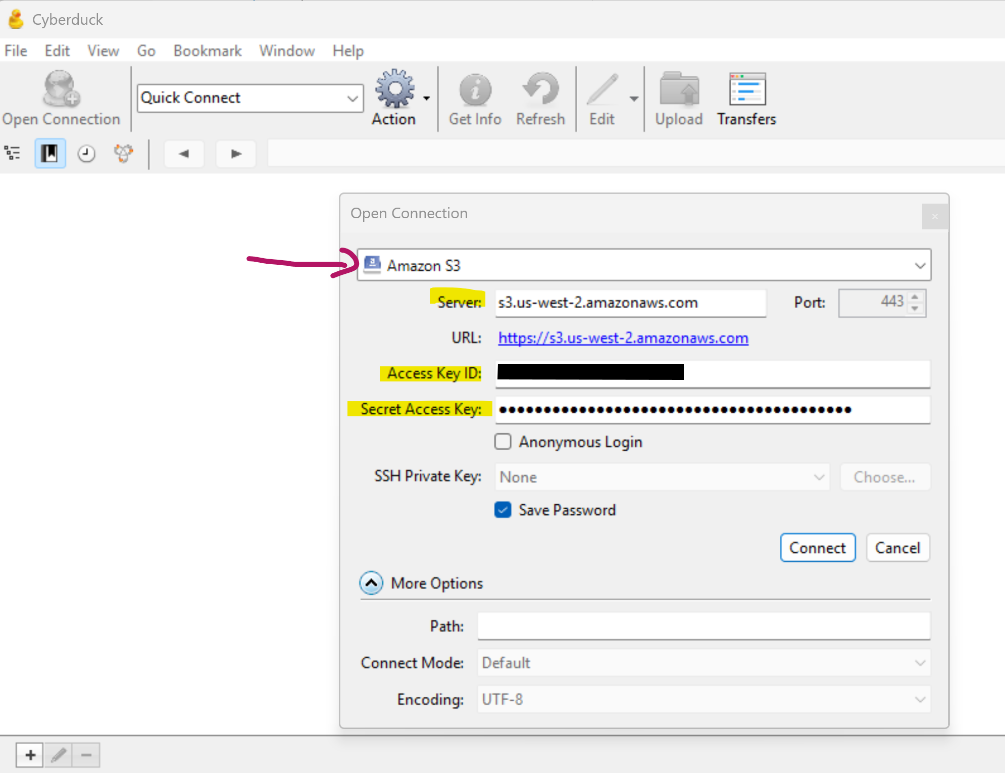 Note: Before proceeding confirm that you are able to successfully connect to S3.
