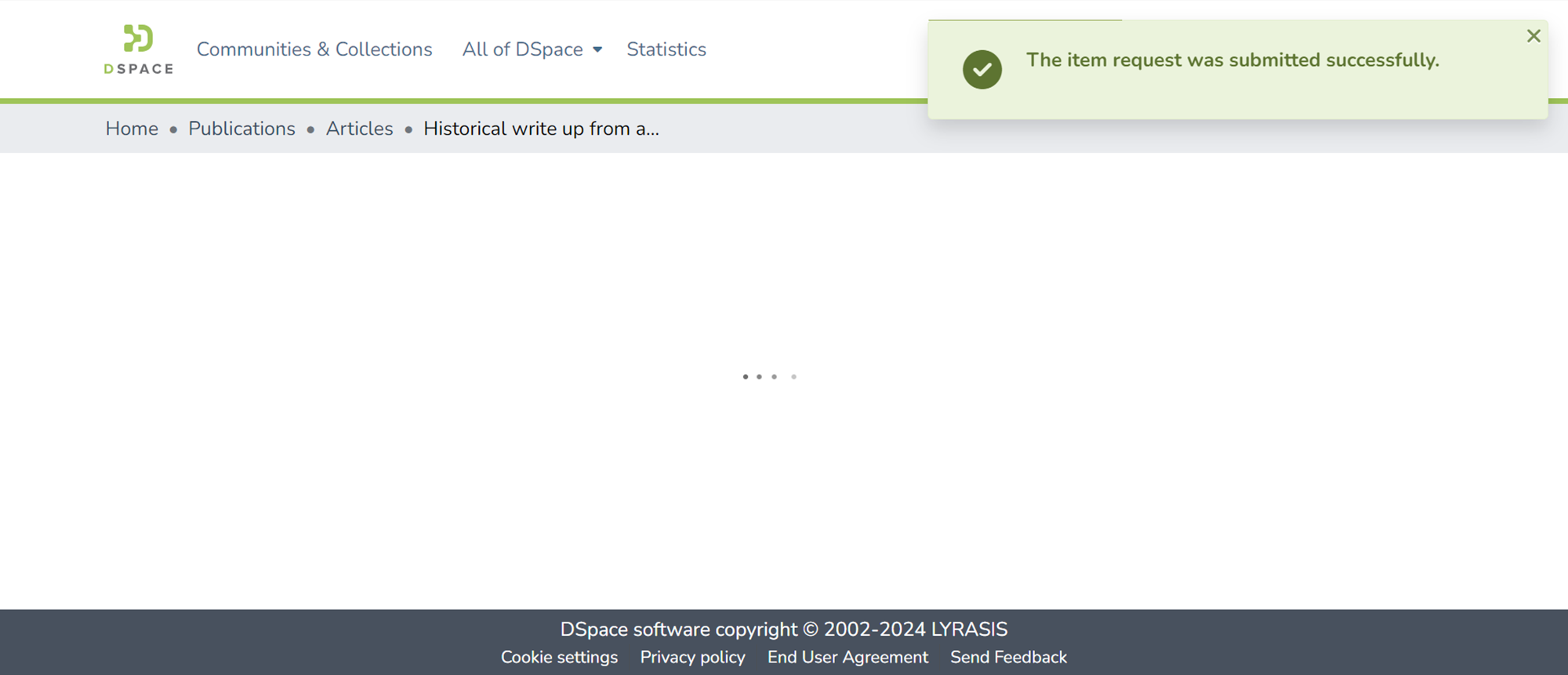 Step 3: After completing the request-a-copy form, click the "Request copy" button to complete the action. A success prompt should appear upon successful completion of the request.