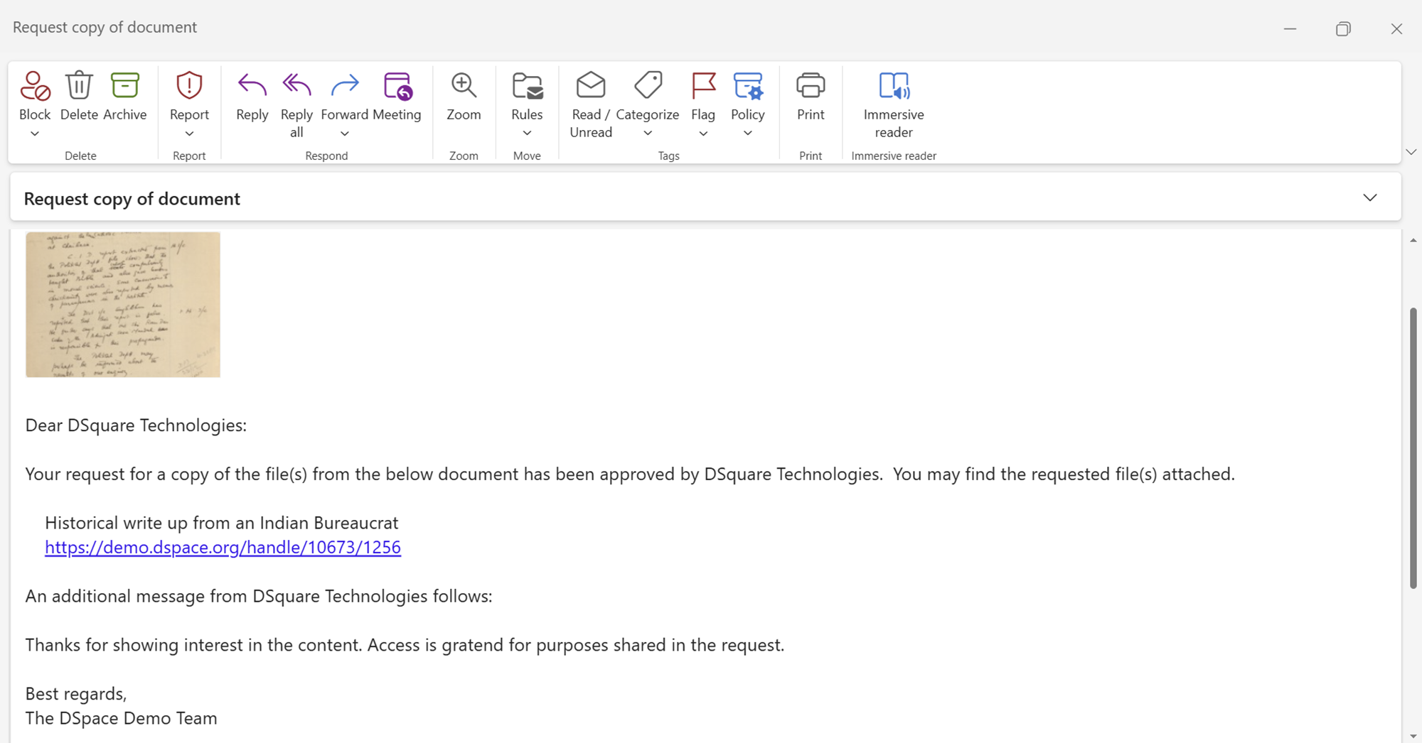 Step 4: Users will receive an e-mail confirming a response to the access request made. Users can click the link to access the attachment from the mail.