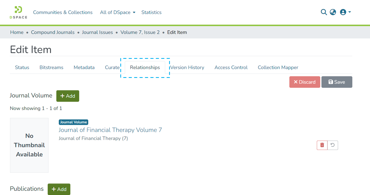 Entity relationships help authorized users to link two or more items by defining relationships among them. A few good examples are the Relationship between an article & Author, a Journal and Journal Article, an Organization Unit and Individuals in the unit, etc.