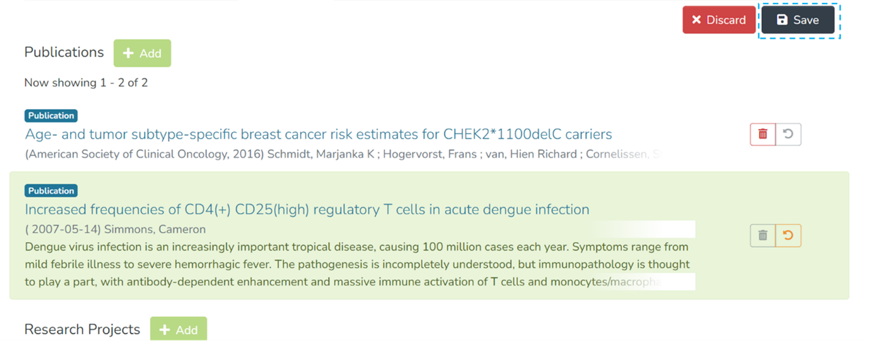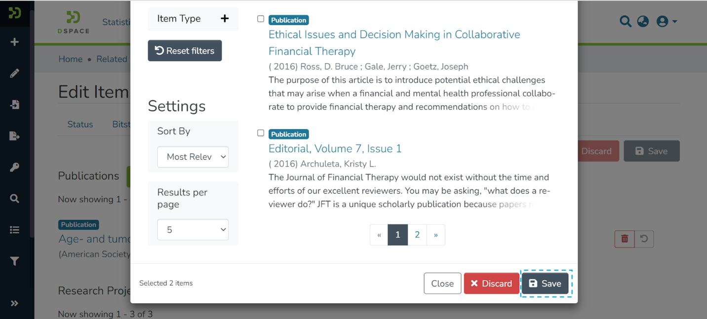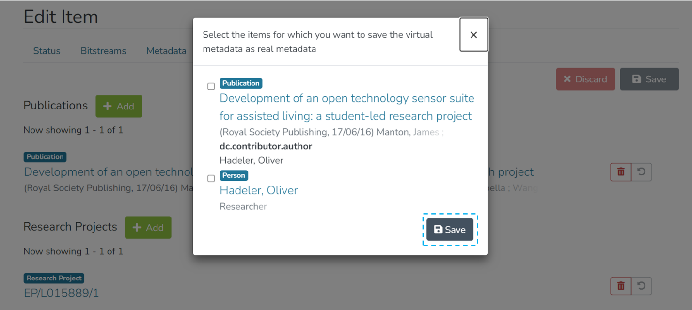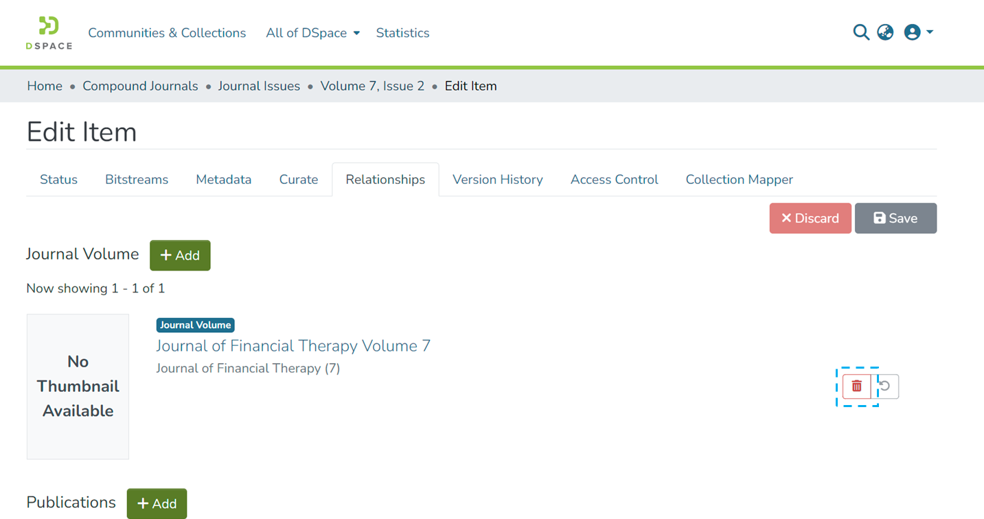 Step 5: Click on the “Save” button to confirm the item addition under the selected relationship type or click “Discard” to undo the addition.