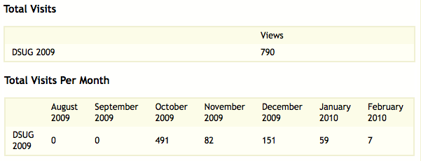 Various statistical reports about the contents and use of your system can be automatically generated by the system. These are generated by analyzing DSpace's log files. Statistics can be broken down monthly.