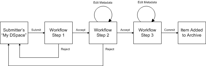 Depending on the policy of the collection to which the submission in targeted, a workflow process may be started. This typically allows one or more human reviewers or 'gatekeepers' to check over the submission and ensure it is suitable for inclusion in the collection.
