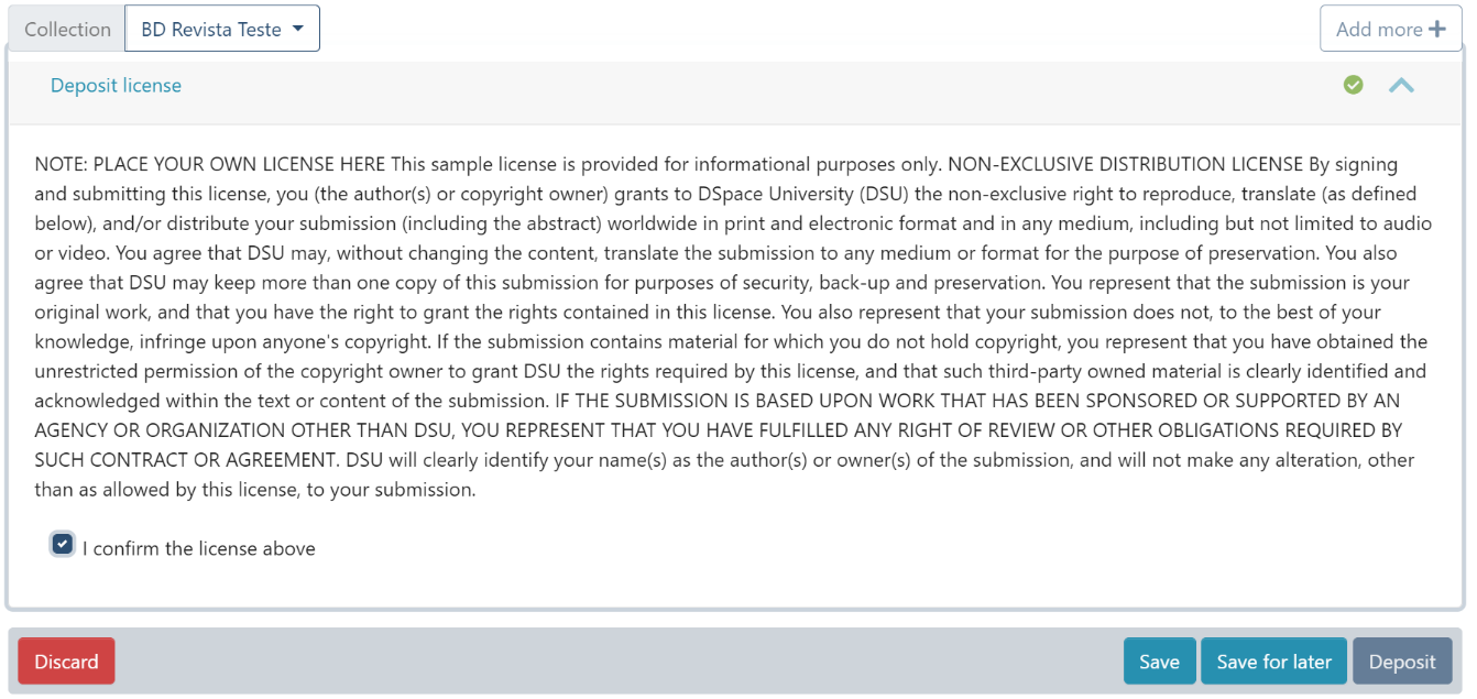 Step 9: After updating all information, the submitter clicks on the “I confirm the license above” checkbox to accept the repository’s license.