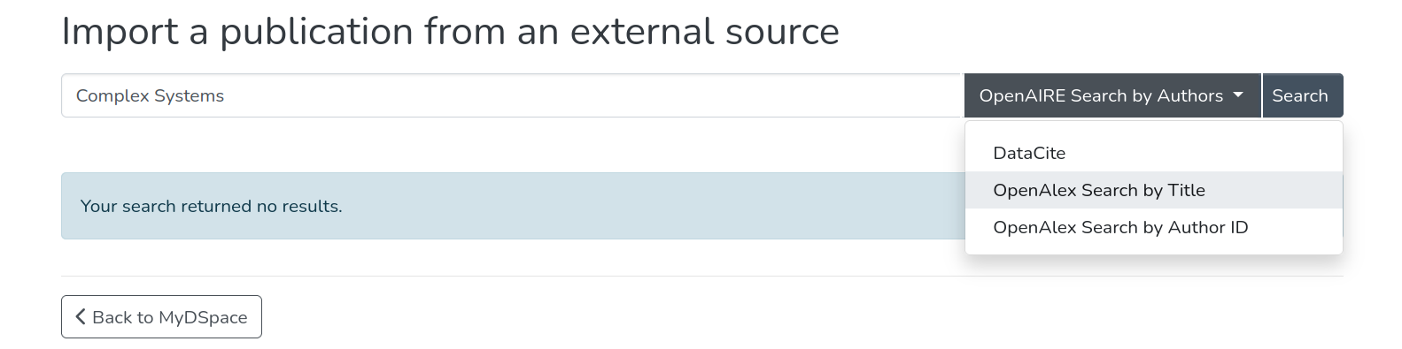 To be able to do the lookup for our configured import-service, we need to be able to know what URL to use to check for publications. This URL the publication-lookup.url setting defined within the [dspace.dir]/config/modules/publication-lookup.cfg. You may choose to modify this setting or override it within your local.cfg.