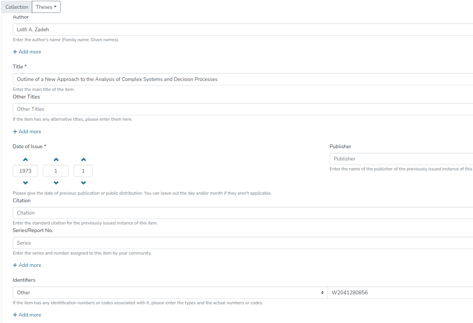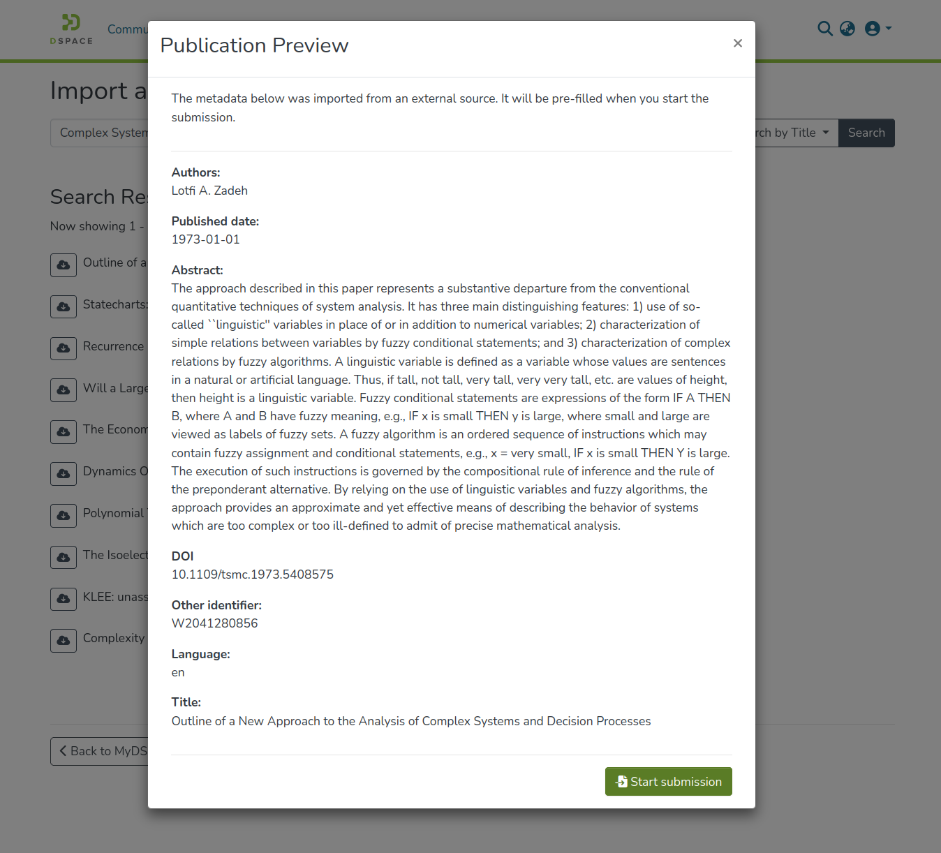 This framework is used by both the REST API and User Interface to help enhance or enrich submissions. One examples usage is in Importing Items via basic bibliographic formats (Endnote, BibTex, RIS, CSV, etc) and online services (arXiv, PubMed, CrossRef, CiNii, etc)