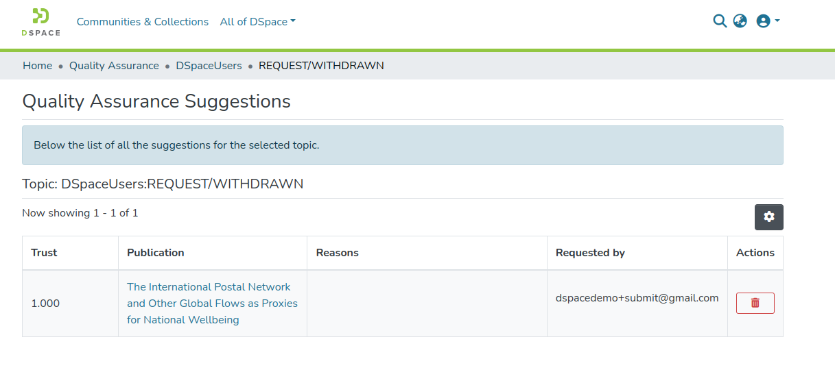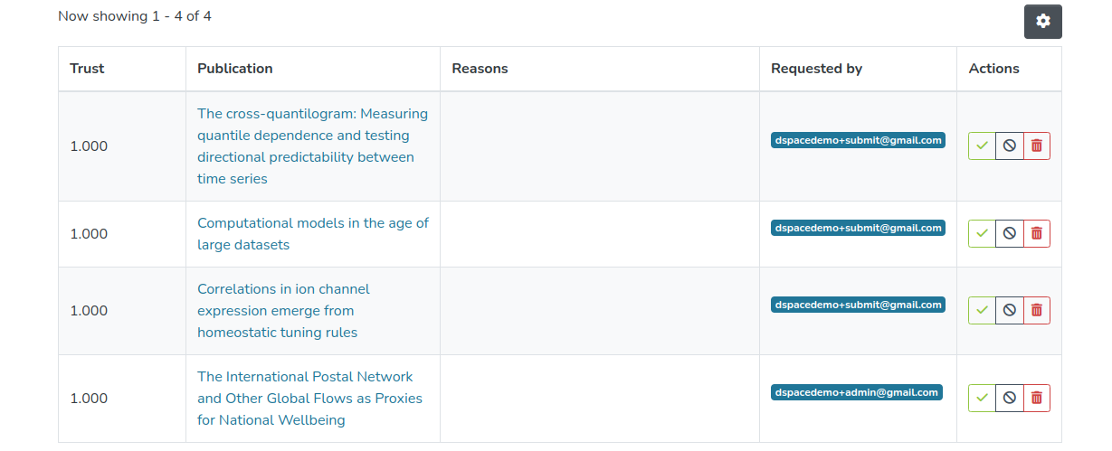 Admin users have the possibility to access all the requests for all the items from MyDspace.