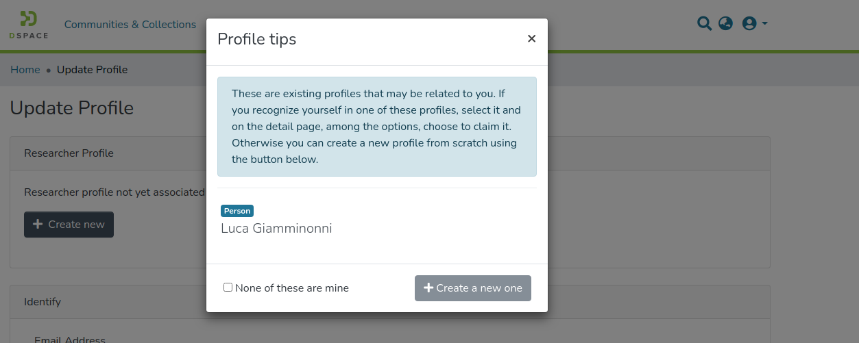 The DSpace Researcher Profile feature has been introduced in DSpace 7.3 to support the ORCID Integration work but can be used alone. It is turned off by default and must be enabled manually