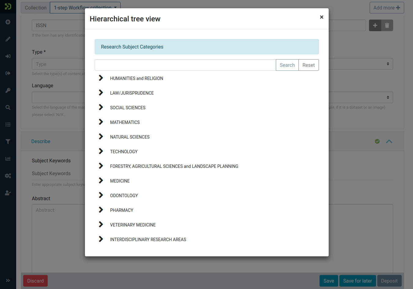 You can also choose to enable certain steps only for specific DSpace Collections. For more details, please see the section below on Assigning a custom Submission Process to a Collection.