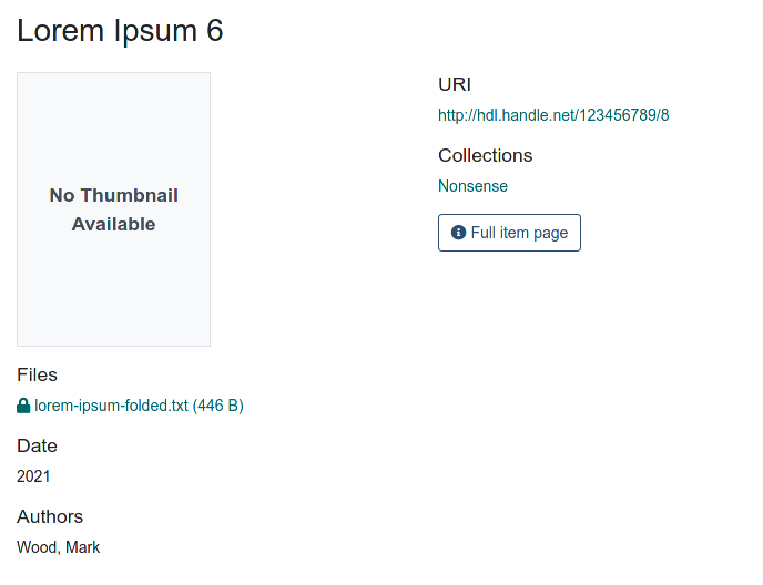 - Sugerencia: Es posible que desees agregar este campo de metadatos a tu configuración "metadata.hide.*" en local.cfg para asegurarte de que este campo de metadatos quede oculto para los usuarios normales y solo sea visible para los usuarios administrativos. De esta forma, esta dirección de correo electrónico NO aparecerá en las páginas de visualización del ítem (excepto para los administradores).