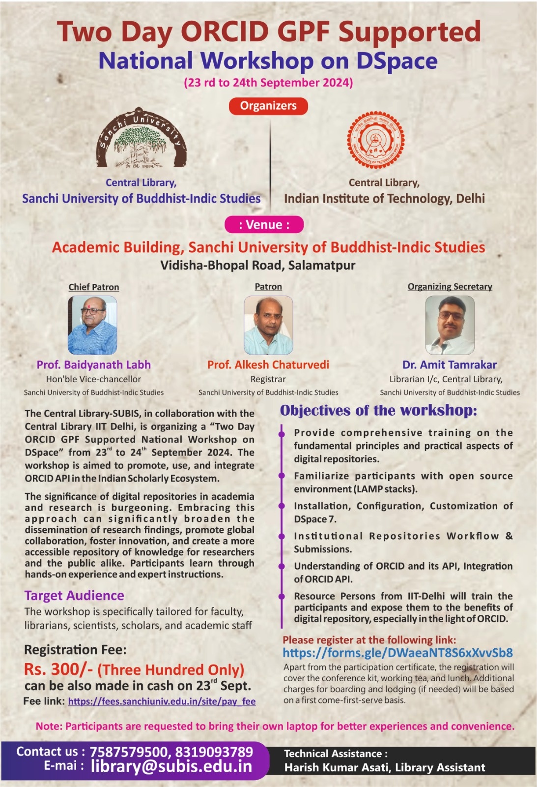 Two Day ORCID GPF Supported National Workshop on DSpace, 23 -24 September 2024 Registration Link