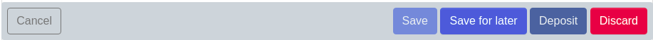 Back -> Cancel -> Submit/Edit/Save/Save for later/Deposit -> Discard/Delete/Remove