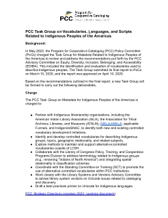The PCC Task Group on Metadata for Indigenous Peoples of the Americas is charged to: